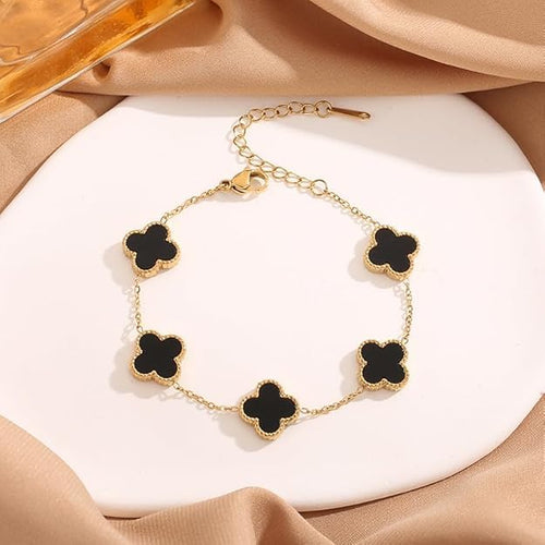 Trendy Clover Bracelet ( Black & White ) 18K GOLD PLATED ANTI TARNISH BRACELET